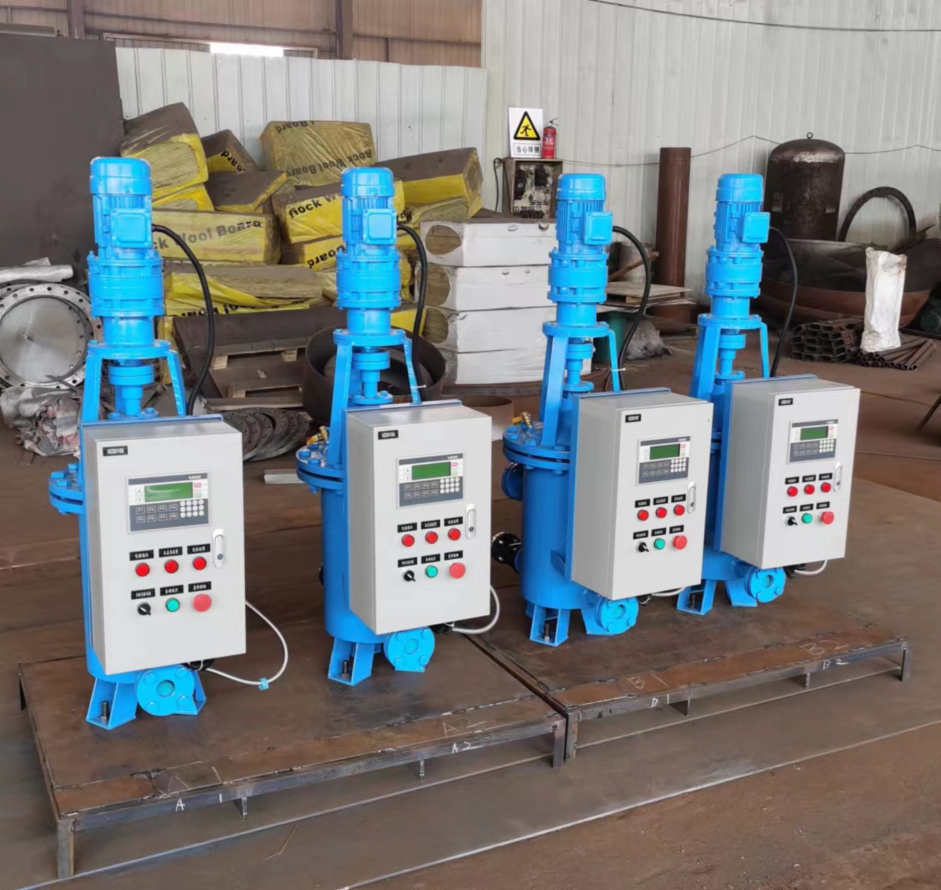 如用戶選型為電動濾水器,則當雜質聚積到一定數量時,利用冷卻水進出水管之間差壓信號來開啟電動排污閥,對附著在網芯內側壁面上的雜質污物反向沖洗,經由排污斗、排污管路和排污閥門排入冷卻水出水管中。排污斗步一進旋轉,依次對準球面網芯每一分格壁面,進行反沖洗。